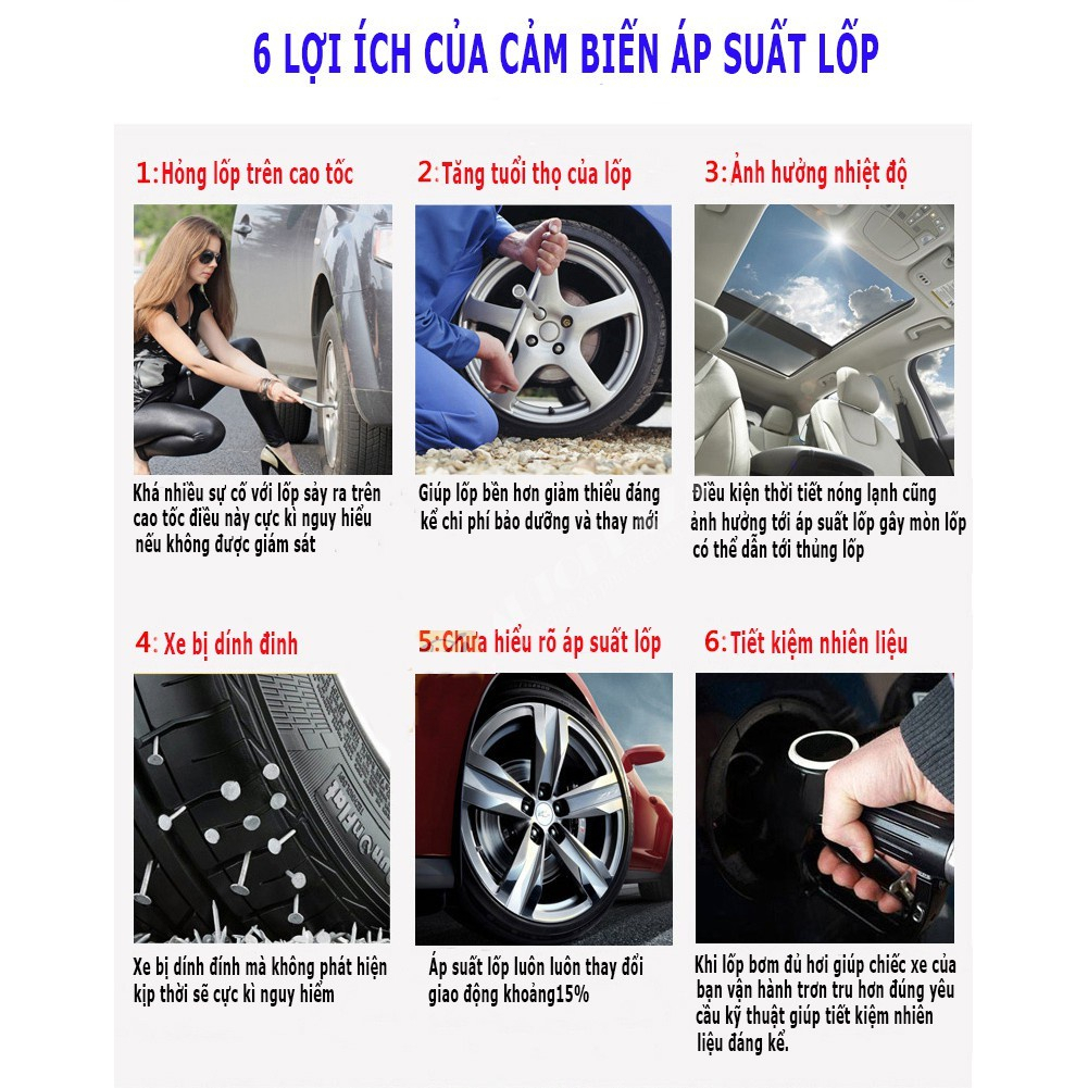 Cảm biến áp suất lốp ô tô TPMS, hiển thị LED màu, có tín hiệu cảnh báo bằng âm thanh