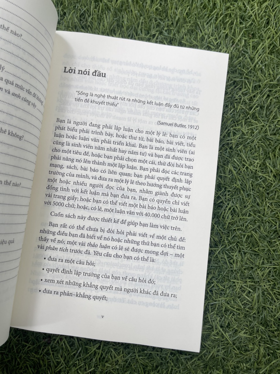 Quyển sách dễ tiếp cận này đưa bạn từng bước từng bước vào nghệ thuật lập luận, từ suy tư về viết cái gì và viết làm sao, cho đến làm cách nào có thể củng cố các khẳng quyết của bạn, và làm sao đi đến một kết luận vững chắc. Được viết một cách hấp dẫn cùng với các tóm tắt đặc biệt hữu ích ở cuối mỗi chương, quyển sách này cho ta lời khuyên dễ dàng thực hiện theo khi đánh giá lập luận của những người khác và trình bày những lập luận hiệu quả của chính bạn. Điểm mạnh của quyển sách này nằm ở hướng dẫn dễ hiểu và sử dụng các lập luận có thực trong đời – vừa đương đại vừa trong lịch sử - và những câu hỏi có thực trong tiểu luận từ đủ các ngành khoa học xã hội và nhân văn. Những ví dụ hấp dẫn, có liên quan, và thường vui vẻ, được sử dụng không phải để minh họa, nhưng để đưa ra các điểm tinh túy ta có thể học, kỹ thuật nào có thể vay mượn và những cạm bẫy cần tránh trong lĩnh vực tư duy phân tích và viết lách.