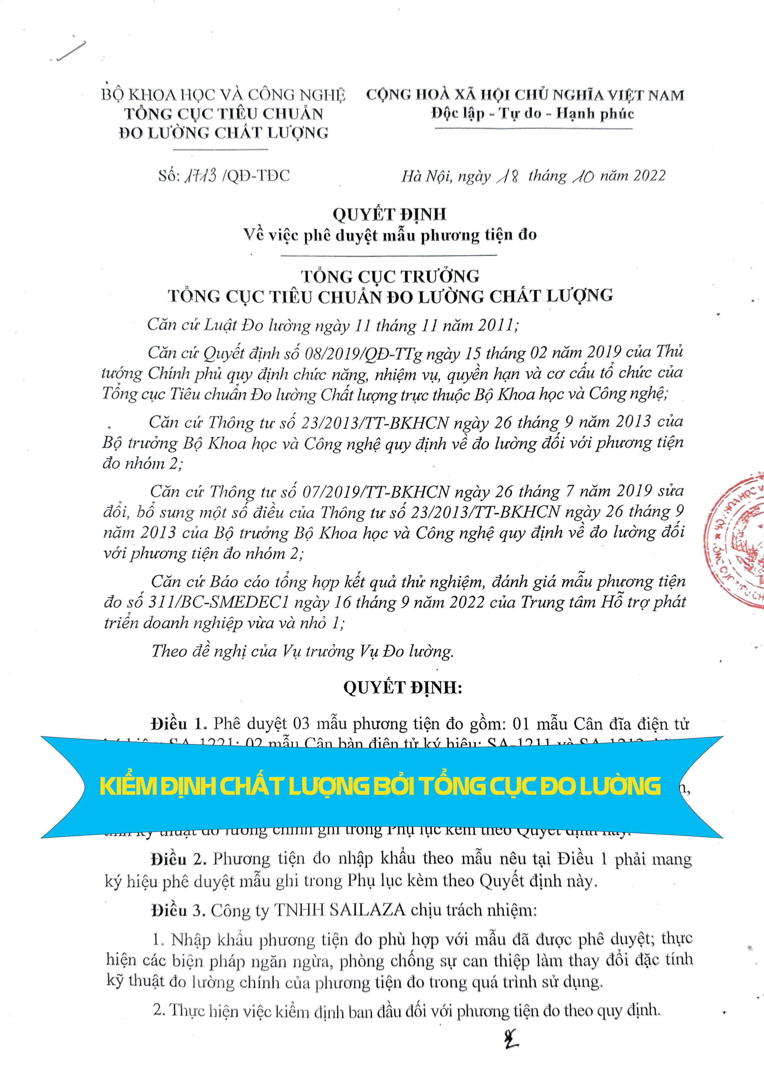 THÔNG TIN CÂN ĐIỆN TỬ THÔNG MINH SA- 1212