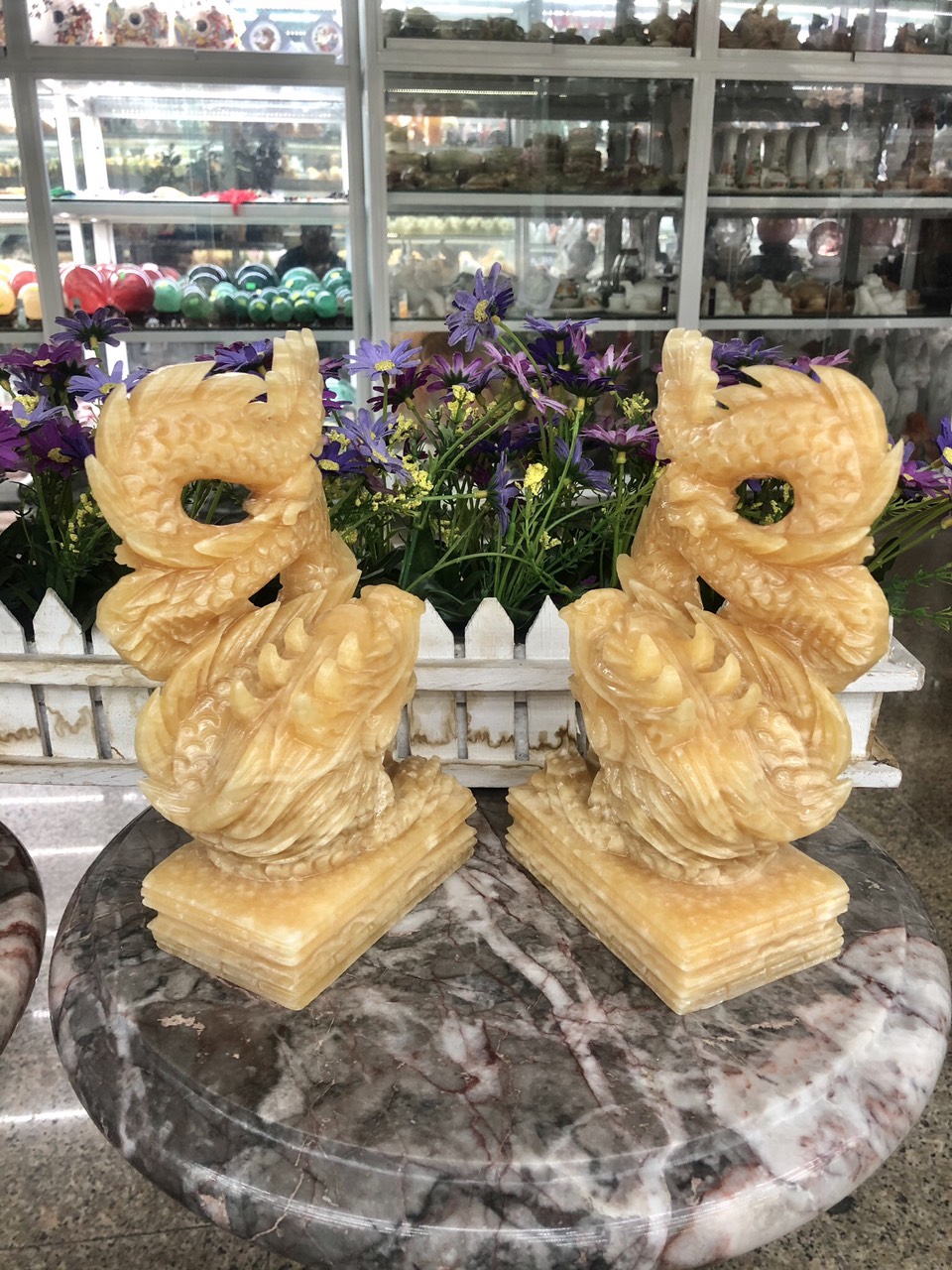 ✨Cặp Rồng đứng phong thủy đá ngọc hoàng long - Cao 20 cm