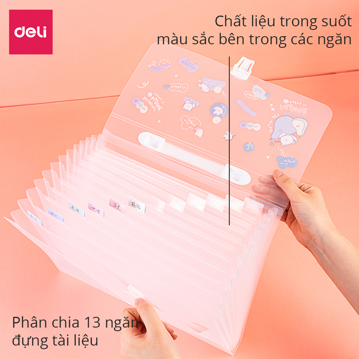 ✨Cặp tài liệu mở rộng 13 ngăn Deli - cặp học sinh - trong suốt - file đựng tài liệu - 1 chiếc - 72563