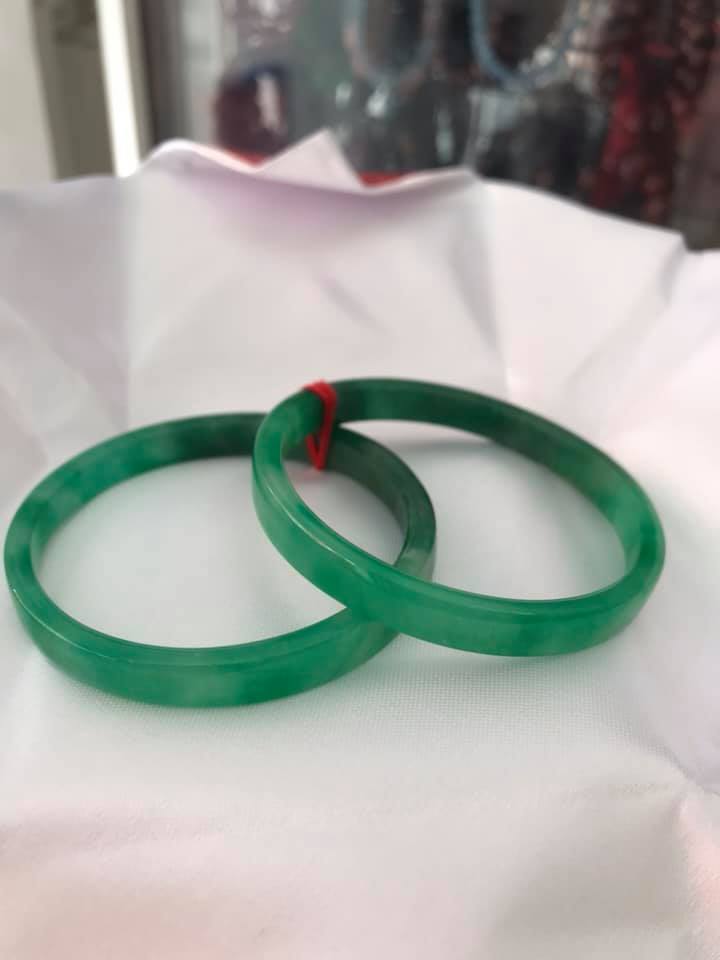 ✨Cặp Vòng Cẩm Thạch Bản Vuông 52mm Xanh Ngọc Lý Đậm Bóng Đẹp Ni 52mm x cao 7mm x dầy 4mm Nữ Mạng Thủy Mộc Hỏa 50kg -> 56kg đeo ạ
