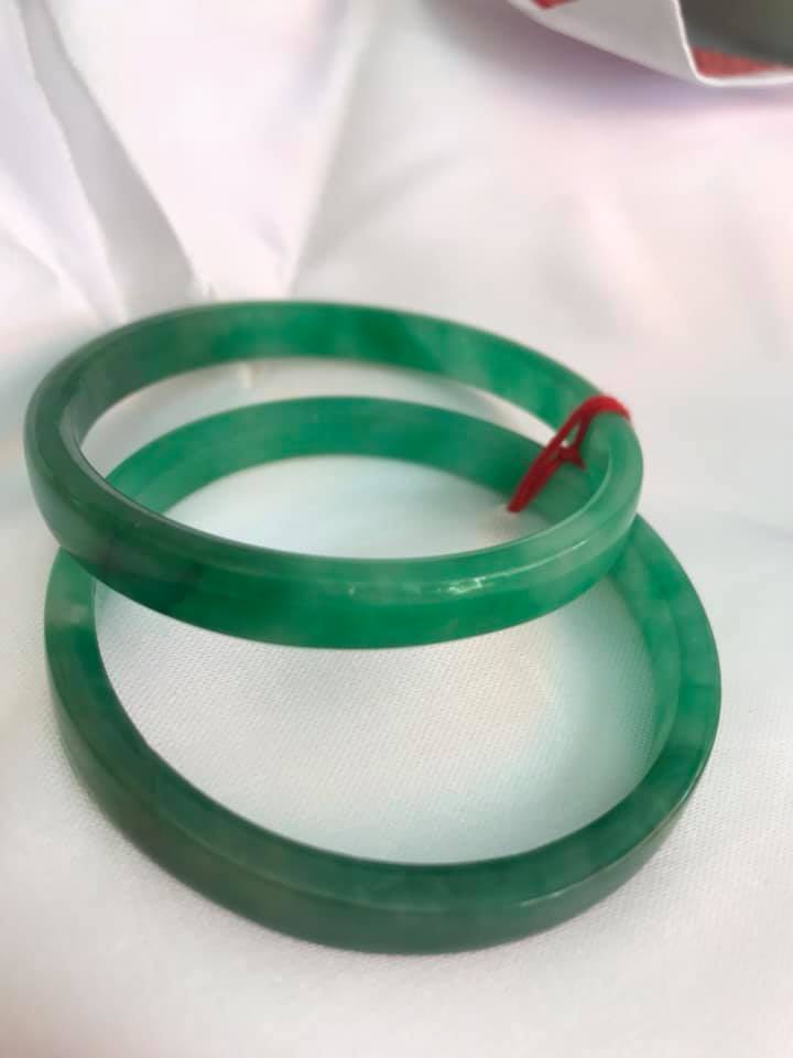 Vòng cẩm thạch Đ Lý 52mm x dầy 7,8mm màu xanh lá tươi hợp Nữ mệnh Mộc mệnh Hỏa 52kg - 56kg đeo ạ