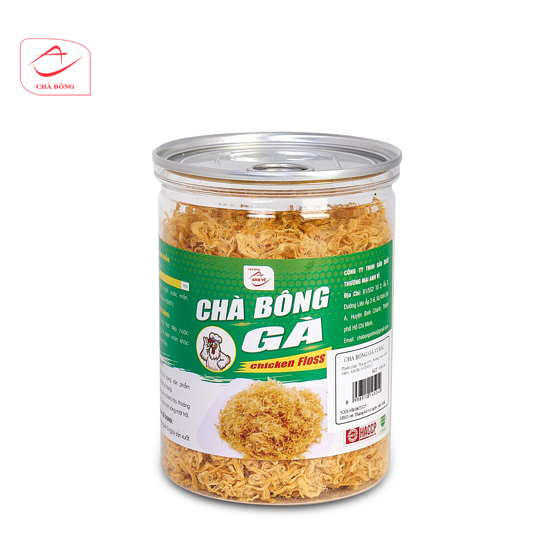 Chà bông gà nguyên chất Đặc Điểm Nổi Bật Của Chà Bông Anh Vĩ • Nguyên Liệu Tươi Ngon: Chà bông Anh Vĩ được sản xuất từ thịt tươi, chọn lọc kỹ càng từ những con heo khỏe mạnh, không chất bảo quản, không phẩm màu, an toàn tuyệt đối cho sức khỏe. • Quy Trình Sản Xuất Hiện Đại: Sản phẩm được chế biến theo quy trình khép kín, hiện đại, tuân thủ nghiêm ngặt các tiêu chuẩn về vệ sinh an toàn thực phẩm. Các công đoạn từ lựa chọn nguyên liệu, chế biến, bảo quản đều được kiểm soát kỹ lưỡng. • Hương Vị Đặc Trưng: Chà bông Anh Vĩ có hương vị thơm ngon, đậm đà, nhẹ nhàng, dễ ăn, dễ kết hợp với các món ăn khác như cơm, bún, phở, xôi hay ăn kèm bánh mì. • Dinh Dưỡng Cao: Chà bông Anh Vĩ không chỉ có hương vị hấp dẫn mà còn giàu protein, cung cấp năng lượng và các dưỡng chất thiết yếu cho cơ thể. • Bao Bì Tiện Dụng: Sản phẩm được đóng gói trong bao bì chắc chắn, tiện lợi, dễ dàng bảo quản và sử dụng.