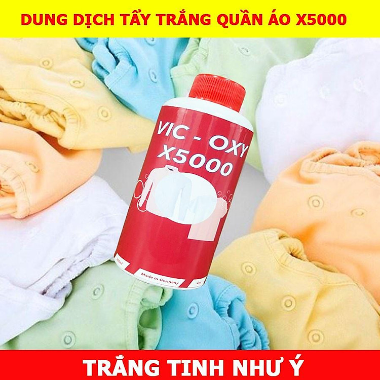 ️Vic-OXY X5000 - Tẩy Trắng Cao Cấp Tẩy trắng quần áo X5000 là dòng tẩy trắng hàng đầu, với khả năng đánh bật 100% các vết bẩn cứng đầu như ố mốc, cà phê, thức ăn, son môi, mà Sản phẩm từ thiên nhiên có mùi thơm dịu nhẹ , an toàn và không gây kích ứng da, không làm bạc màu hay ảnh hưởng đến chất lượng vải ️ ƯU ĐIỂM CỦA X5000