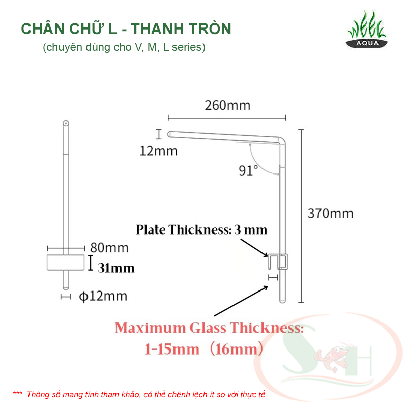 - Tải trọng mỗi chân: <= 5 kg. LƯU Ý VỀ CHÂN TREO ĐÈN WEEK AQUA STAND CHỮ L: