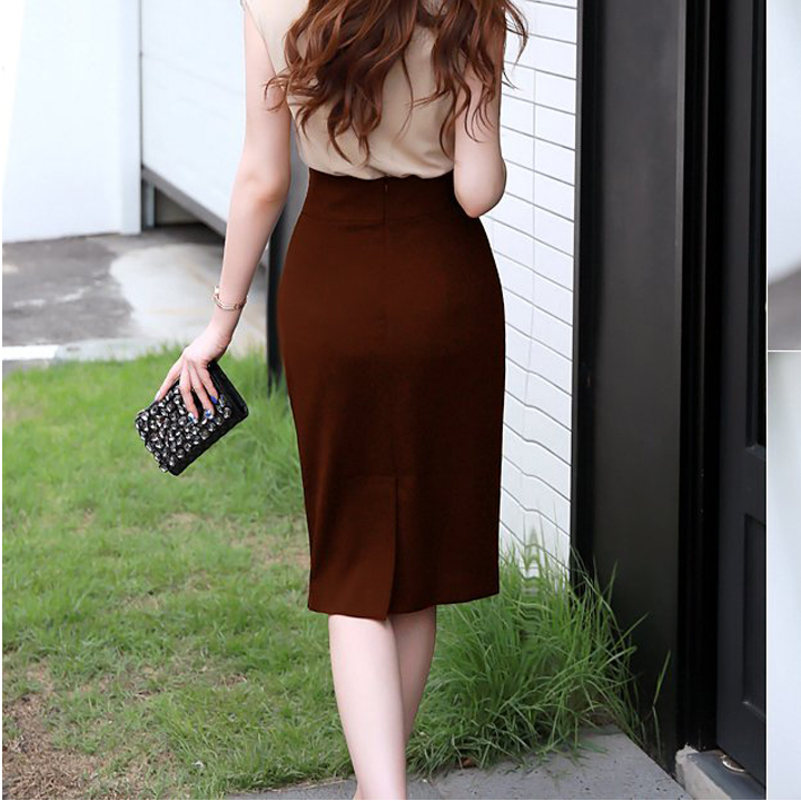 - Tên sản phẩm: Chân váy bút chì lưng cao thiết kế phối nút phong cách LC19 chất liệu vải nhập có độ co giản tốt.