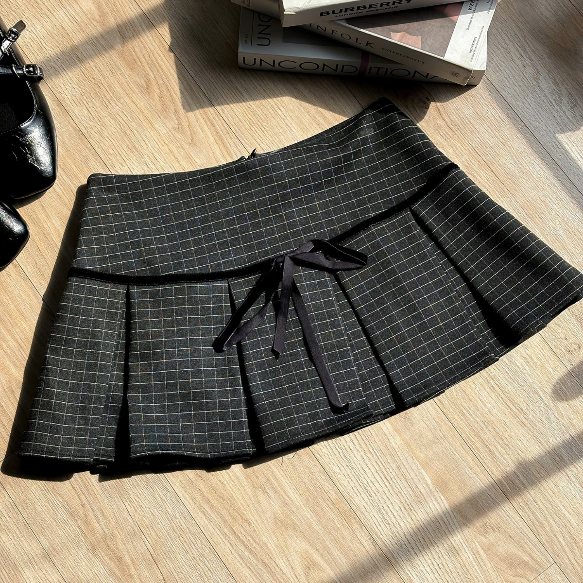 Chân váy xếp li dáng ngắn kẻ sọc caro siêu xinh