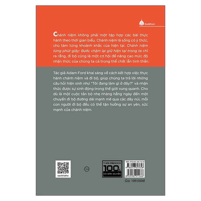 Đây là cuốn sách nằm trong bộ “Chánh niệm từng phút giây”. Cuốn sách gợi mở những suy nghĩ mới về việc đi bộ – một trong những hoạt động thú vị nhất mà chúng ta thực hiện mỗi ngày – như một cách tiếp cận có “chánh niệm” hơn với cuộc sống.