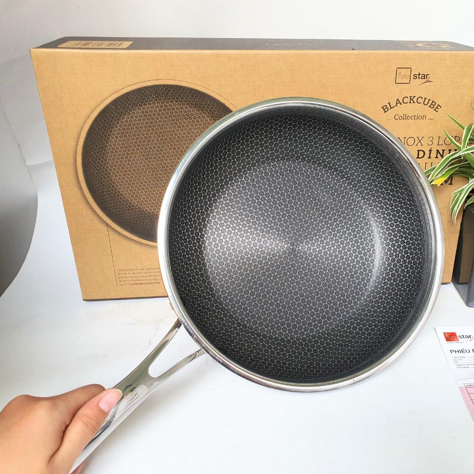 - Công nghệ blackcube chống trầy bền đẹp không oxi hóa 3 lớp đúc liền từ thân xuống đáy - Chảo Sâu Blackcube Inox 3 Lớp Đúc Liền Đáy Từ Chống Dính Five Star được sản xuất từ inox 304-nhôm- inox 430 bền đẹp, cứng chắc.