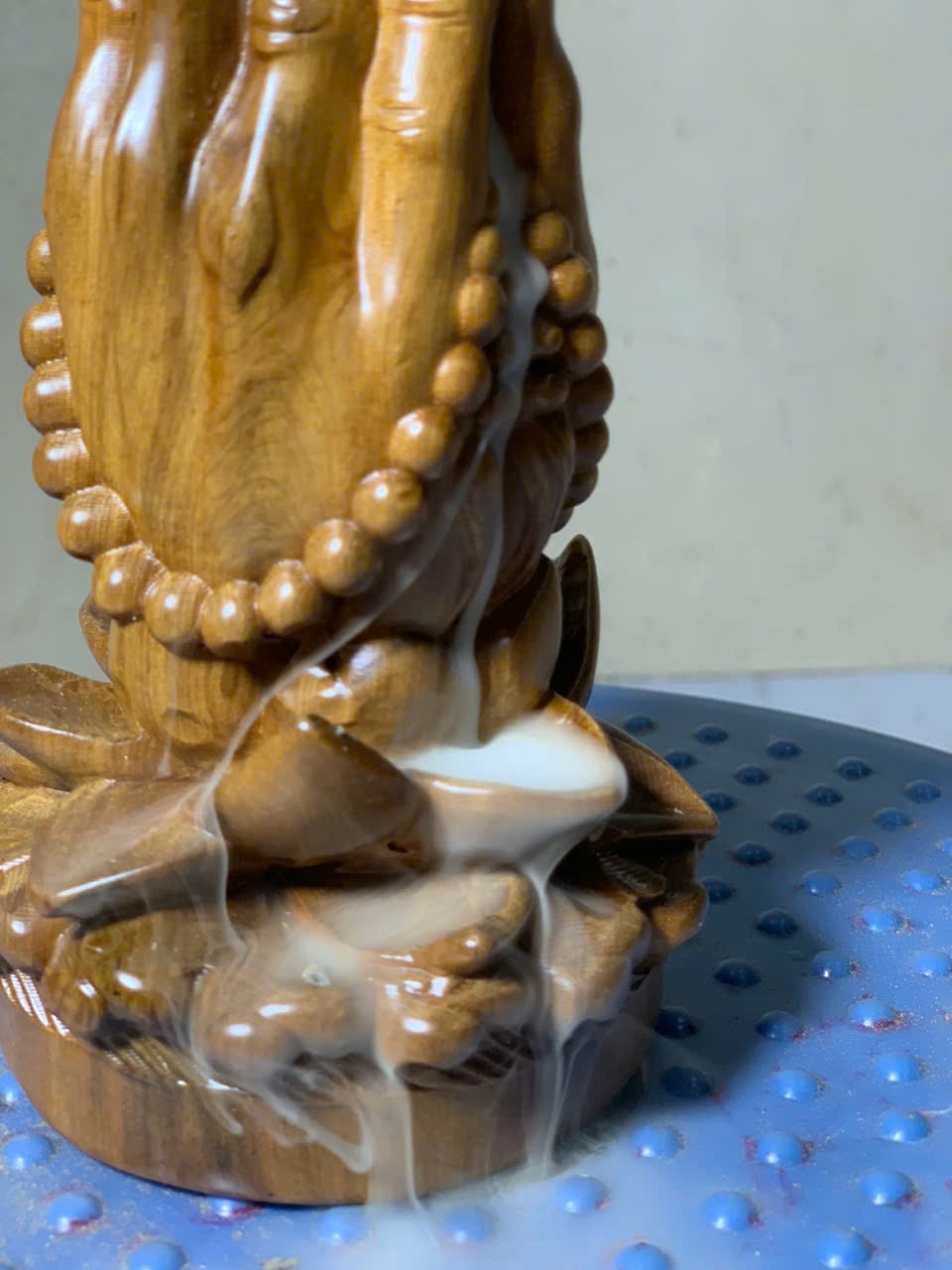 _ Tượng nhất tâm bái phật được làm bằng chất liệu gỗ ngọc am liền khối tự nhiên 100% _ Kt cao 50x20x10cm _ Tượng được chạm khắc gọt tỉa vô cùng tỉa tỉ mỉ