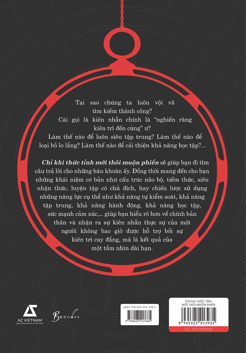 - Bạn đọc rất nhiều sách nhưng sau đó chẳng đọng lại chút gì? Nếu cứ tiếp tục mơ hồ như vậy, bạn sẽ chẳng khác nào một người “say ngủ đang thức”: muốn phấn đấu nhưng không thể đánh bại sự lười biếng, muốn cố gắng nhưng thường rơi vào trạng thái kém hiệu suất… Khi nhận ra ước mơ và hiện thực chênh lệch quá lớn, bạn bè đồng trang lứa đã bỏ xa m.ình, thì bạn chỉ còn biết lặng lẽ sống cuộc đời tầm thường mà thôi. Tại sao m.ình không biết sự thật này sớm hơn? Tại sao không nắm bắt cơ hội ở độ tuổi tốt nhất? “Chỉ khi thức tỉnh mới thôi muộn phiền” - TOP 4 sách kỹ năng bán chạy nhất trên website mua sắm uy tín tại Trung Quốc sẽ giải đáp những băn khoăn đó của bạn. Cuốn sách mang đến những khái niệm cơ bản về cấu trúc não bộ, tiềm thức, siêu nhận thức; chiến lược để tận dụng tối đa năng lực tập trung, kỹ năng học tập, sức mạnh của EQ… Thông qua việc luyện tập trong vùng co giãn để nâng cao hiệu suất công việc, mô hình học ít nhớ lâu, cách xây dựng và duy trì thói quen thành công với chi phí 0 đồng, bạn đọc sẽ khai phá được những tiềm năng vô hạn ngay cả chính m.ình cũng không thể tưởng tượng ra. “Nếu bạn cảm thấy m.ình đã bỏ lỡ độ tuổi tốt nhất, thật ra cũng chẳng sao, vì “hiện tại” luôn là thời cơ tốt nhất để bắt đầu” - Tác giả Châu Lĩnh. Hy vọng “Chỉ khi thức tỉnh mới thôi muộn phiền” sẽ là ngọn đuốc dẫn đường giúp bạn vượt qua đêm tối của sự mơ hồ và tự tin bước trên con đường gặt hái thành công.