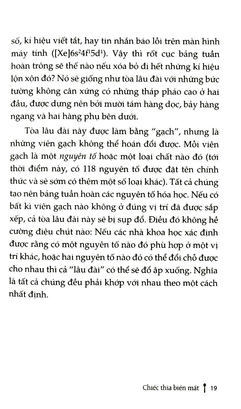 Chiếc Thìa Biến Mất ------------ Với những ai từng băn khoăn về câu hỏi thế giới này bắt nguồn từ đâu, vạn vật được tạo ra và vận hành như thế nào, cuốn sách nTrong