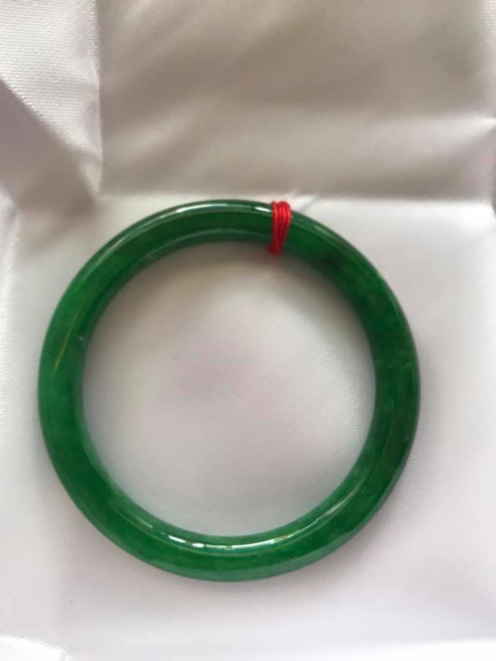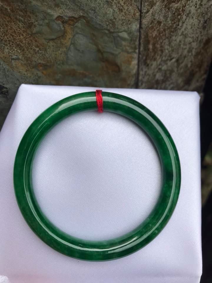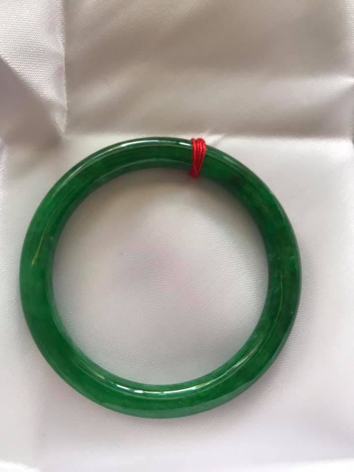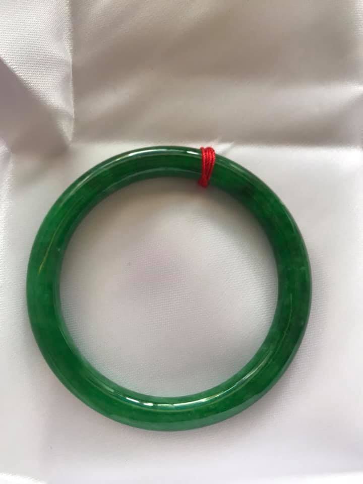 Vòng tay Nữ Đá Cẩm Thạch mới TR Lý 57 mm x cọng 7,5mm Màu Xanh lý tươi trắng 2 bên đều vòng đẹp Nữ 55kg - 64kg đeo đẹp món quà tặng chính mình
