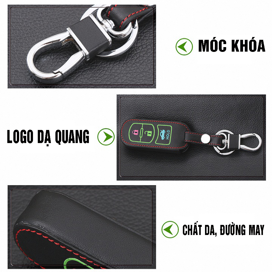 Cho xe Mazda, bao da chìa khóa 3 nút dạ quang kiêm móc khóa chất liệu da, Inox MIHOCO Mazda 3N