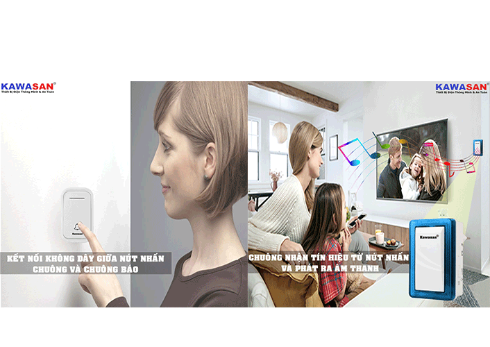 - Khả năng tích hợp thêm: Nhà lớn có nhiều tầng, nhiều cửa dùng một chuông thì sẽ khó nghe được. Chuông cửa không dây KAWASAN phần nút nhấn, đầu phát chuông được mở rộng tích hợp thêm. Khả năng tích hợp cao tiện lợi cho nhà nhiều tầng Ví dụ: Nhà có 2 cửa và 3 tầng nếu dùng 1 chuông cửa thông thường. Bạn có thể phải dùng 3 bộ chuông gắn cho 3 tầng, nút nhấn phải gắn 3 cái ở công để gọi từng tầng. Với chuông KAWASAN bạn chỉ cần 1 nút nhấn với 3 đầu phát chuông cắm vào ổ điện tại mỗi tầng, nút nhấn gắn tại cửa hoặc cổng. Khi nhấn 1 nút nhấn thì 3 chuông đều phát nhạc. Với chuông có dây điều này sẽ khó vì phải đi dây thêm, lắp đặt tại các vị trí có định khó di chuyển. CÁC VẤN ĐỀ THƯỜNG GẶP KHI MUA CHUÔNG KHÔNG DÂY KÉM CHẤT LƯỢNG