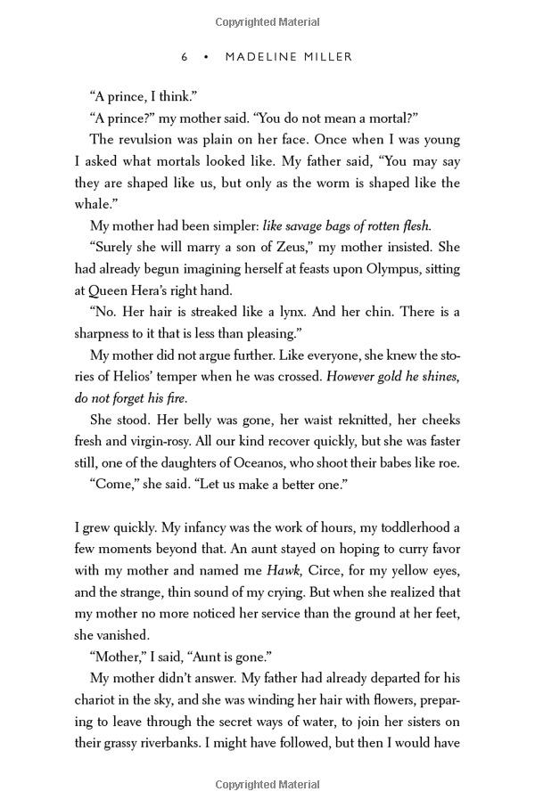 Scorned, rejected and at last exiled from her father's house for her dark gifts, Circe arrives on the remote island of Aiaia with nothing but her wits and magic to help her. But there is danger for a solitary woman in the world, and Circe's independence and strange powers draw the wrath of men and gods alike. To protect what she holds dear, Circe must decide whether she belongs with the deities she is born from, or the mortals she has come to love.