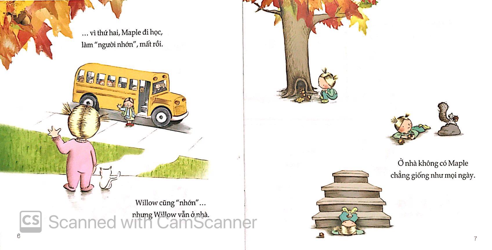 Cuốn Chị đi học, em ở nhà thuộc bộ sách “Có chị, có em” - dành cho trẻ 3 – 6 tuổi, kể về hai chị em gái Maple và Willow vô cùng đáng yêu. Đó là những mẩu chuyện nho nhỏ, những hoạt động vui chơi, khám phá hằng ngày của hai cô bé, có niềm vui, có nỗi buồn, có cả những hờn dỗi, nhưng bao trùm lên tất cả là tình cảm chị em ấm ấp.