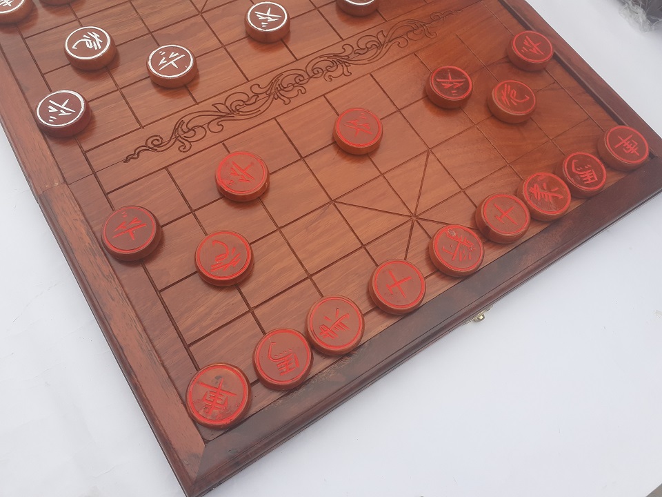_ Bộ bàn cờ tướng +quân cờ được làm bằng chất liệu gỗ trắc đỏ đen tự nhiên 100% _ Kt bàn cờ 52×50 dầy 3cm _ Kt quân cờ 4.0×1.5cm _ Bộ bàn cờ