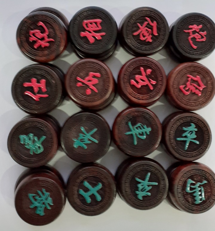 BÀN CỜ TƯỚNG GỖ HƯƠNG GHÉP MẶT VÀ QUÂN CỜ GỖ TRẮC ĐỎ ĐEN GIÀ ĐANH NGUYÊN KHỐI - GIÁ #1000k.