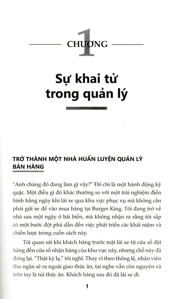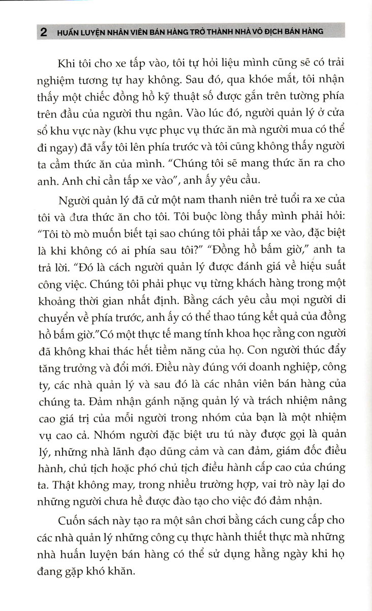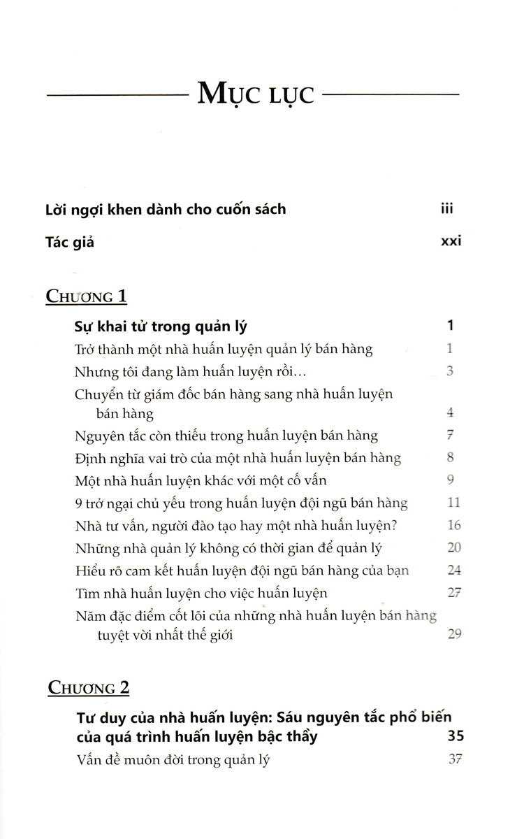 Cuốn sách này bao gồm các nghiên cứu điển hình, chiến lược xoay chuyển tình thế trong 30 ngày dành cho những người làm việc kém hiệu quả, một thư viện gồm các biểu mẫu và kịch bản huấn luyện, cũng như hàng trăm câu hỏi huấn luyện mạnh mẽ. Bạn có thể sử dụng ngay lập tức để huấn luyện bất kỳ ai trong mọi tình huống. Huấn Luyện Nhân Viên Bán Hàng Trở Thành Nhà Vô Địch Bán Hàng là cẩm nang của bạn để tạo ra một nền văn hóa huấn luyện tiến bộ và xây dựng đội ngũ những nhân viên hàng đầu .
