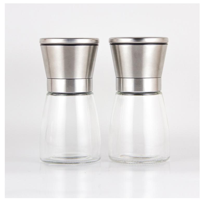 Máy Xay Tiêu Cầm Tay Thủy Tinh Dụng Cụ Cối Xay Tiêu Nắp Inox Vặn Tay