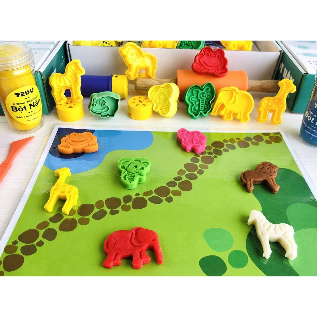 - tấm bìa chơi bột nặn theo chủ đề - khơi gợi sáng tạo cho bé trong khi chơi Bạn thân mến, TEDU thật sự rất vui khi bạn quan tâm đến đồ chơi an toàn mang tính giáo dục và khuyến khích sự sáng tạo của bé. Nguyên liệu: Hướng dẫn bảo quản Đậy kín nắp hộp sau khi chơi, bảo quản ở nhiệt độ phòng cho thời gian chơi tốt nhất là 6 tháng sau ngày sản xuất. Hướng dẫn sử dụng Bột sau khi lấy ra khỏi hộp cần được nhào nhẹ 30 giây để đạt độ mịn tuyệt đối trước khi chơi. Chơi bột nặn trên mặt phẳng trơn như bàn gỗ, nhựa hoặc mica, không cán bột nặn lên giấy. Hướng dẫn khôi phục bột cũ Bột sau thời gian chơi lâu có dấu hiệu mềm quá, bạn rắc 1 lượng nhỏ bột mì và vài giọt dầu ăn rồi nhào lại. Nếu bột để quên bên ngoài và bị khô nhẹ, bạn nhỏ 1 vài giọt nước và nhào lại. Nếu để khô lâu lớp ngoài bị khô cứng, bạn tháo lớp ngoài và bỏ, bột bên trong vẫn mềm có thể chơi được bình thường.