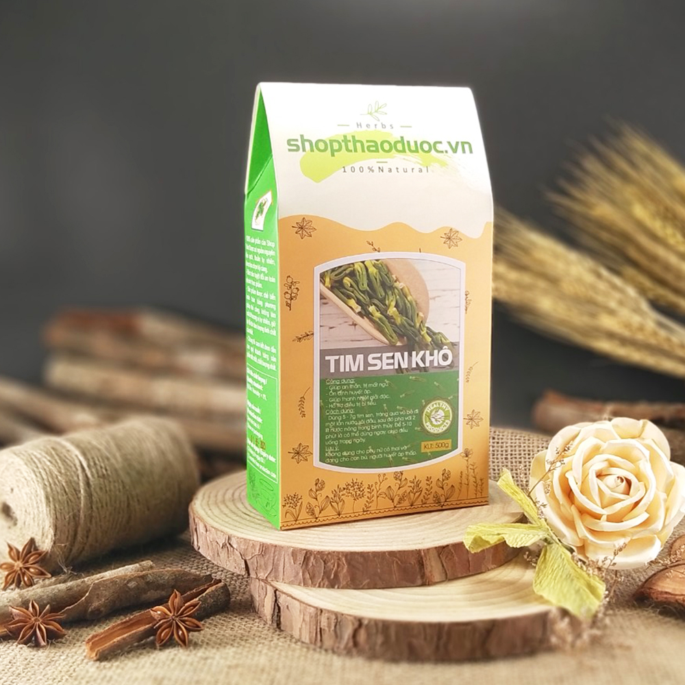 Thành phần: Tim sen tươi 100% sấy lạnh Công dụng: Trà tim sen (còn gọi là trà tâm sen) có vị đắng, tính hàn thường được sử dụng như một thảo dược trong y học