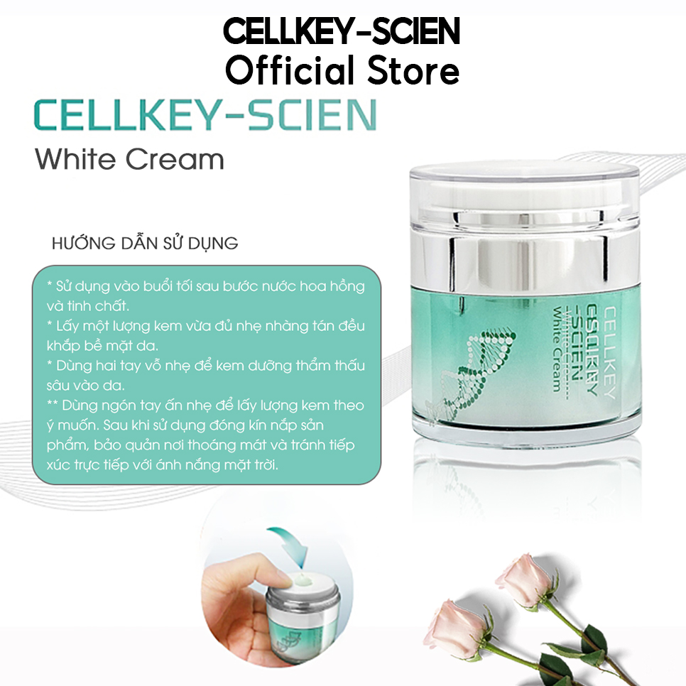 Cellkey-Scien White Cream - Kem dưỡng trắng da chiết xuất từ Tế bào gốc thực vật giúp phục hồi, chăm sóc da, giúp da luôn ẩm mượt, căng mịn, tăng độ săn chắc, đàn hồi, xóa mờ nếp nhăn và cải thiện tông màu da, dưỡng da trắng sáng, tươi trẻ từ sâu bên trong.