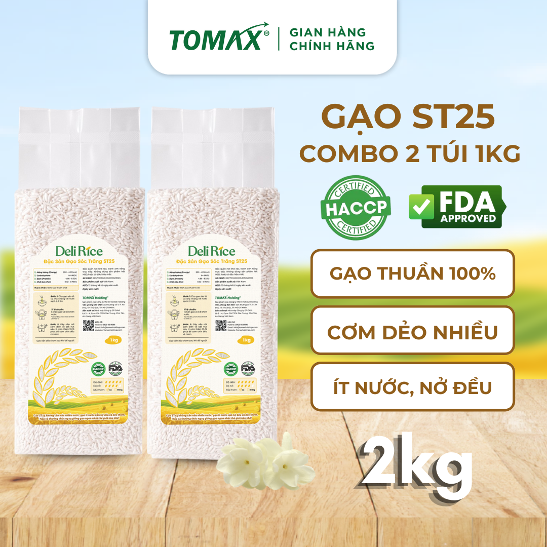 COMBO MIX 3 TÚI 1KG GẠO ST25, JASMINE VÀ ĐÀI THƠM Tomax - TƠI XỐP, DẺO THƠM, THƯỢNG HẠNG - TOMAX Gạo hữu cơ Tomax 100% không có chất bảo quản, không có chất chống