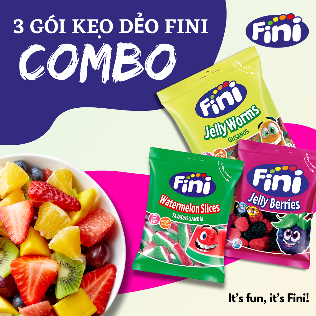 Combo 3 Gói Kẹo Dẻo Fini tự chọn (90g x 3)Combo 3 Gói Kẹo Dẻo Fini tự chọn (90g x 3)Combo 3 Gói Kẹo Dẻo Fini tự chọn (90g x 3)