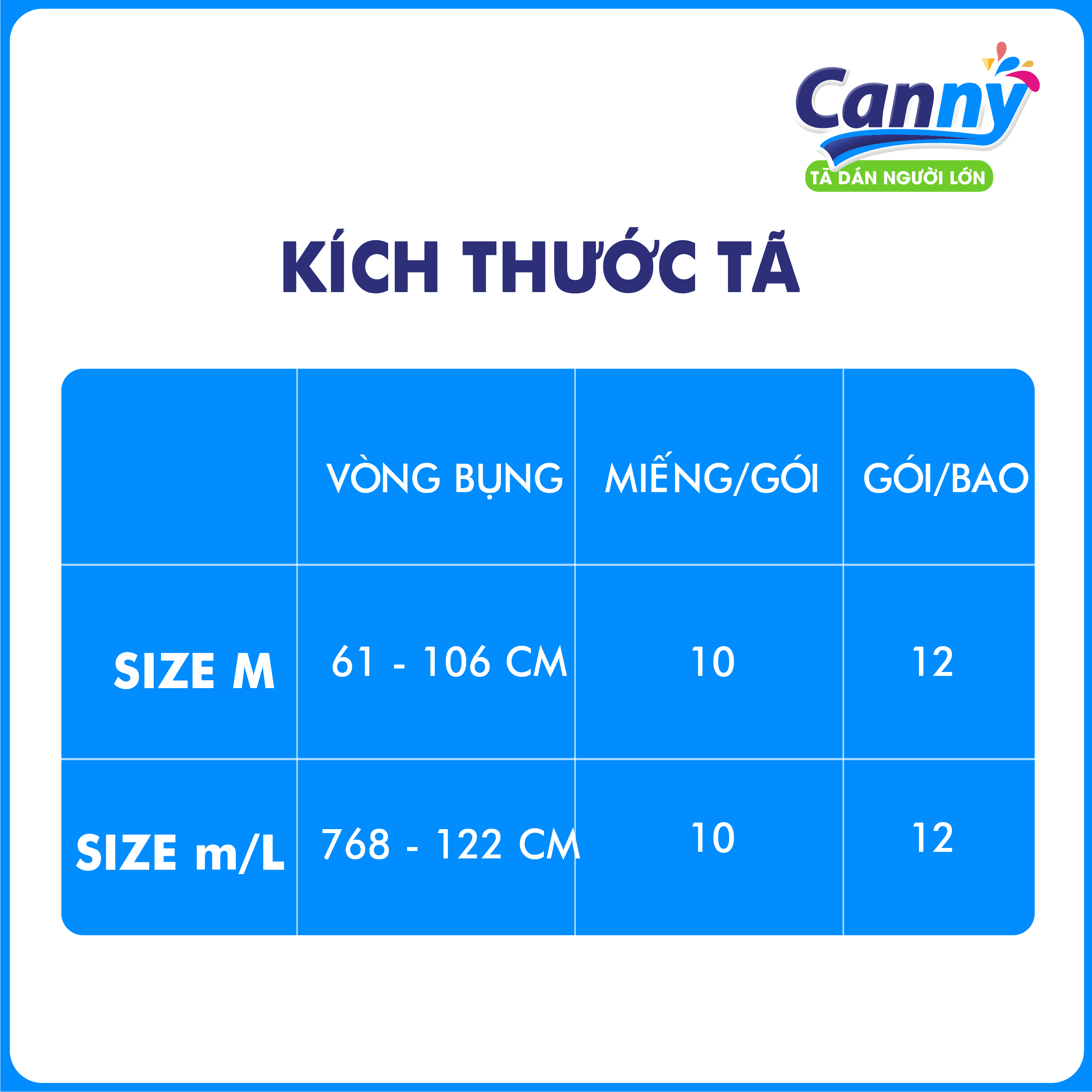 Combo 3 gói Tã Dán Người Lớn Canny Siêu Mềm, Siêu Thấm, Kháng Khuẩn Size M10, M/L10 (10miếng)