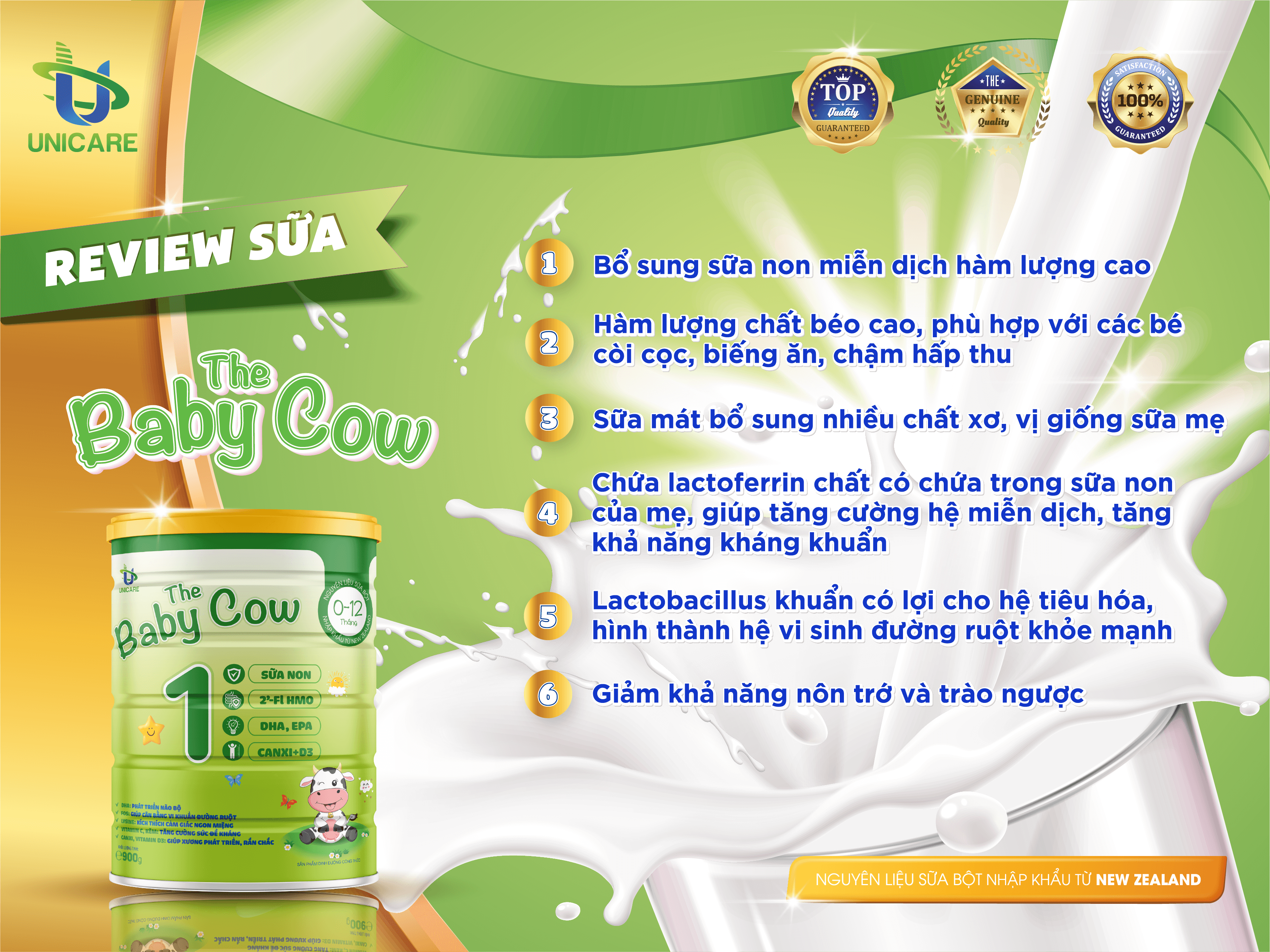 Sữa Non The Baby Cow 1 - đảm bảo tiêu chuẩn lựa chọn dinh dưỡng từ sữa bổ sung Tiêu chí đầu tiên thường được phụ huynh lựa chọn là yếu tố mang đến "nguồn
