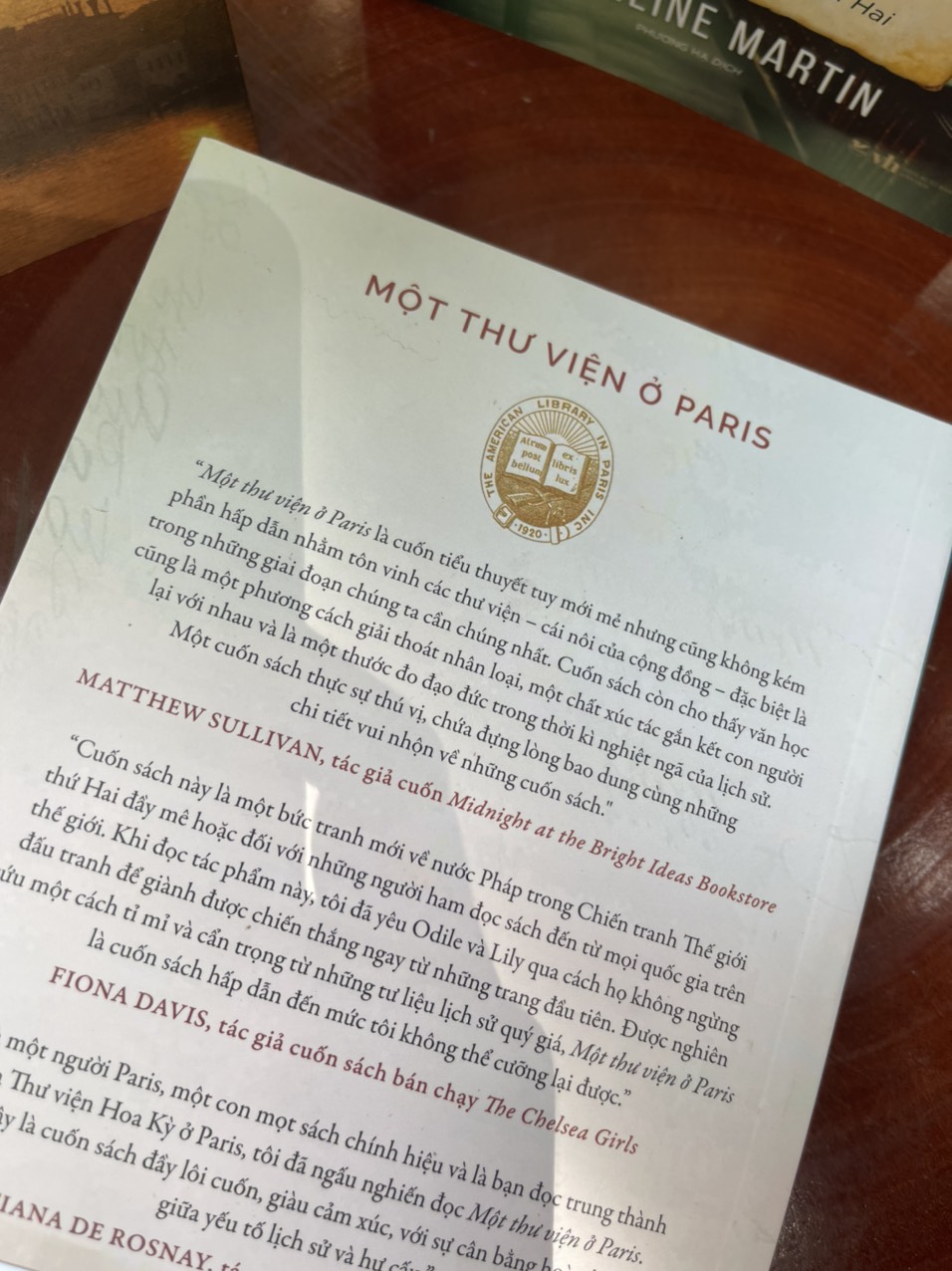 Dựa trên câu chuyện có thật trong Thế chiến thứ Hai về những thủ thư anh hùng của Thư viện Hoa Kỳ ở Paris, Một thư viện ở Paris của Janet Skeslien Charles kể về một câu chuyện khó quên về tình yêu đầy lãng mạn, tình bạn và gia đình trong tình cảnh bi đát và tăm tối nhất. Cuốn sách xoay quanh người phụ nữ Pháp như Odile. Cô ấy yêu mọi thứ về sách cũng như thư viện. Cô ấy đã ghi nhớ hệ thống Dewey Decimal, thậm chí, cô ấy còn bị mê mẩn cả mùi của những cuốn sách.