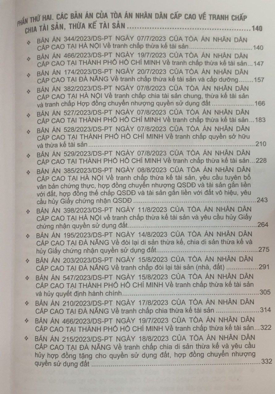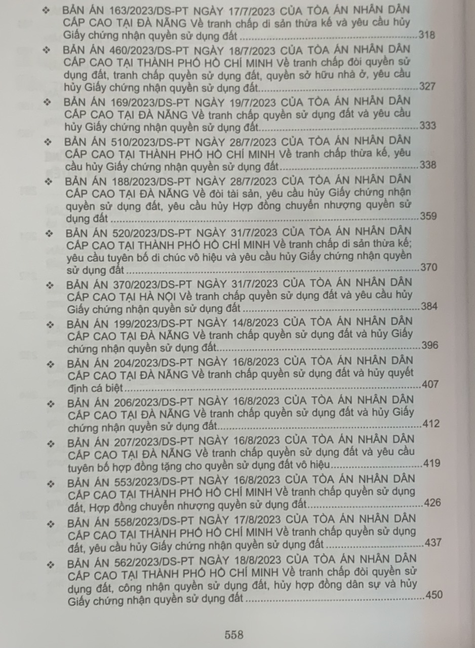 Tuyển tập các bản án của Tòa án nhân dân cấp cao về quyền sử dụng đất và tài sản gắn liền với đất
