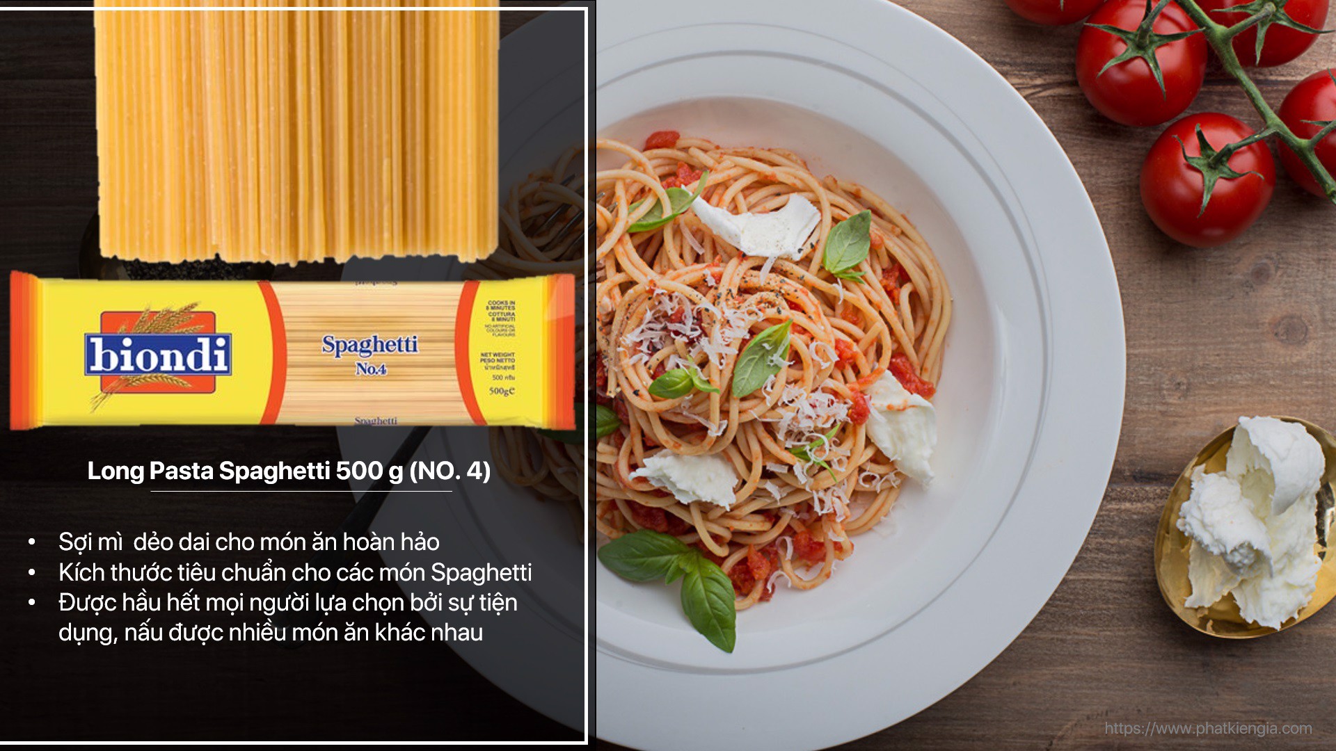 MÌ Ý SPAGHETTI SỐ 4 BIONDI 500G (THƯƠNG HIỆU ÚC - SX THÁI LAN) Quick, easy, tasty — that’s Biondi Pasta! Dễ dàng - Nhanh chóng - Hương vị ngon tuyệt - là những tính từ miêu tả đầy đủ