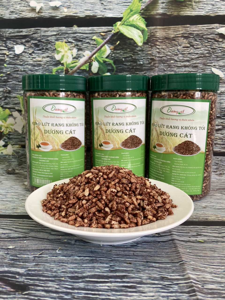 Gạo lứt rang không tỏi giòn, xốp, thơm ngon, giữ được hàm lượng các chất dinh dưỡng ban đầu, là món ăn liền tiện lợi và tốt cho sức khỏe. Sản phẩm gồm gạo lứt rang hòa quyện cùng với muối, đường, ớt đem lại vị ngon khó cưỡng. Còn gì bằng khí vừa xem phim, đọc sách hoặc trò chuyện cùng bạn bè và nhăm nhi gạo lứt rang.