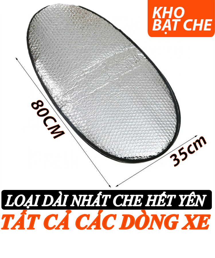 THÔNG TIN SẢN PHẨM - Kích thước:Dài 80cm, phần rộng nhất 36cm - Số lượng: 5 Miếng - Chất liệu: Nilon phủ lớp tráng bạc Tấm lót chống nắng yên xe máy được làm bằng