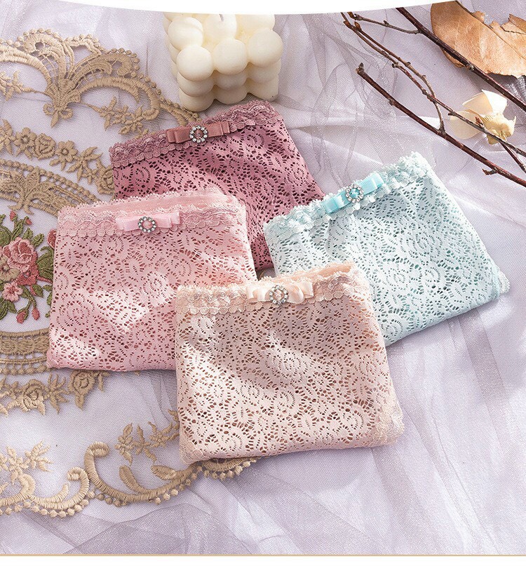 - Quần lót ren dễ thương chất liệu vải ren cao cấp, phong cách nữ tính, trẻ trung, co giãn vô tạo cho bạn sự thoải mái năng động và đặc biệt không kém phần