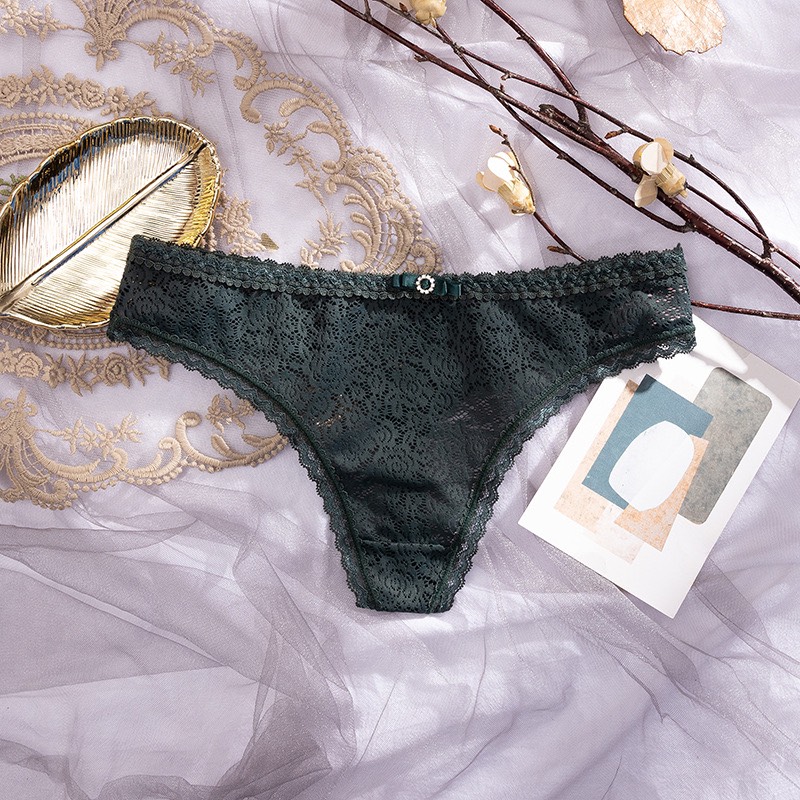 Free Size<55kg 1. Tên sản phẩm: Quần lót lọt khe dành cho nữ 2. Chất liệu: Ren 3. Màu sắc: Nhiều màu tùy chọn 4. Kích thước sản phẩm: Một kích cỡ 5. Phong cách:
