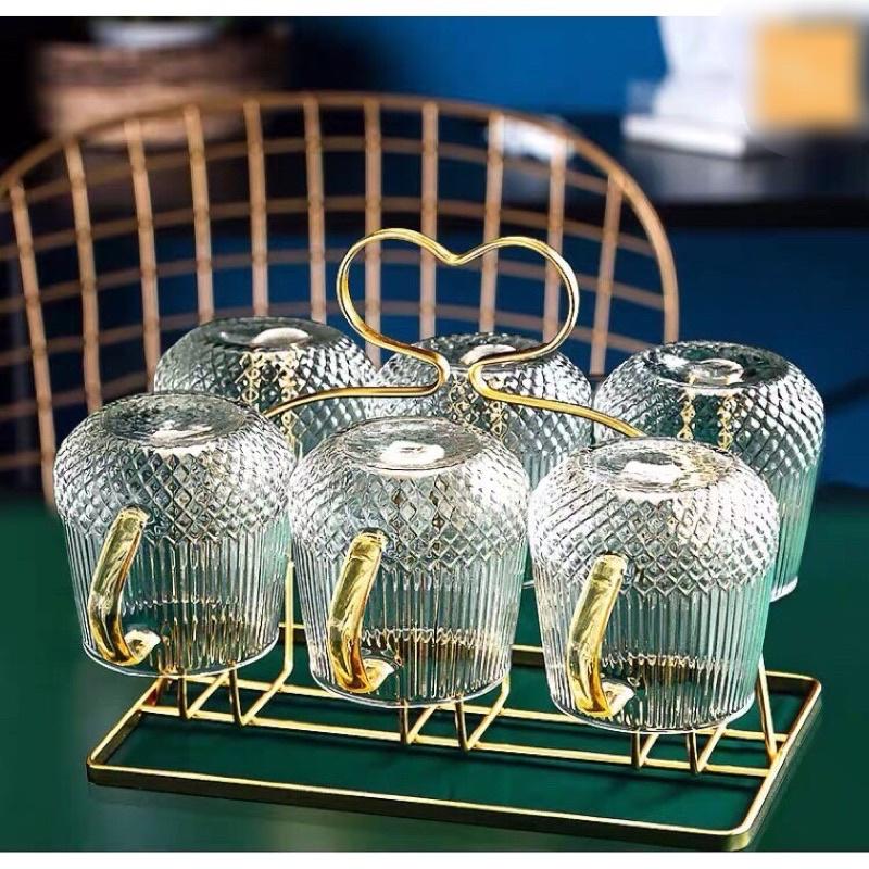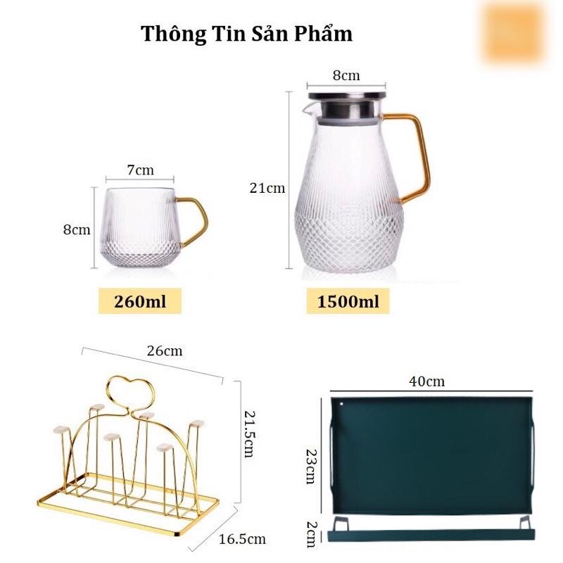 Bộ 6 cốc uống nước Kèm Ca kính 2 lít, Khay úp cốc Việt Nhật chịu nhiệt tốt, Cốc tổ ong uống bia, trà
