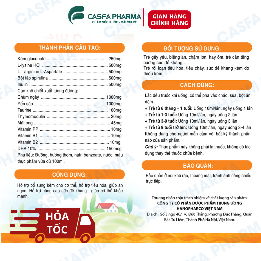 Cung cấp kẽm, lysine và DHA giúp cải thiện biếng ăn và tăng cường sức đề kháng.