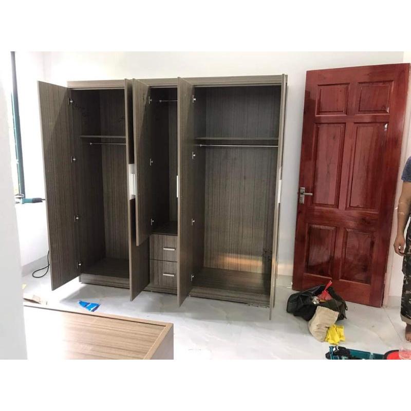 Combo giường tủ như hình làm bằng gỗ MDF cốt nâu