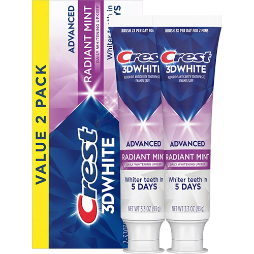 Combo kem đánh răng Crest 3D White Radiant Mint là giải pháp làm trắng răng toàn diện. Sản phẩm giúp loại bỏ vết ố vàng trên bề mặt, làm sạch sâu, ngăn ngừa sâu răng và mang lại hơi thở thơm mát, cho bạn nụ cười trắng sáng, tự tin.
