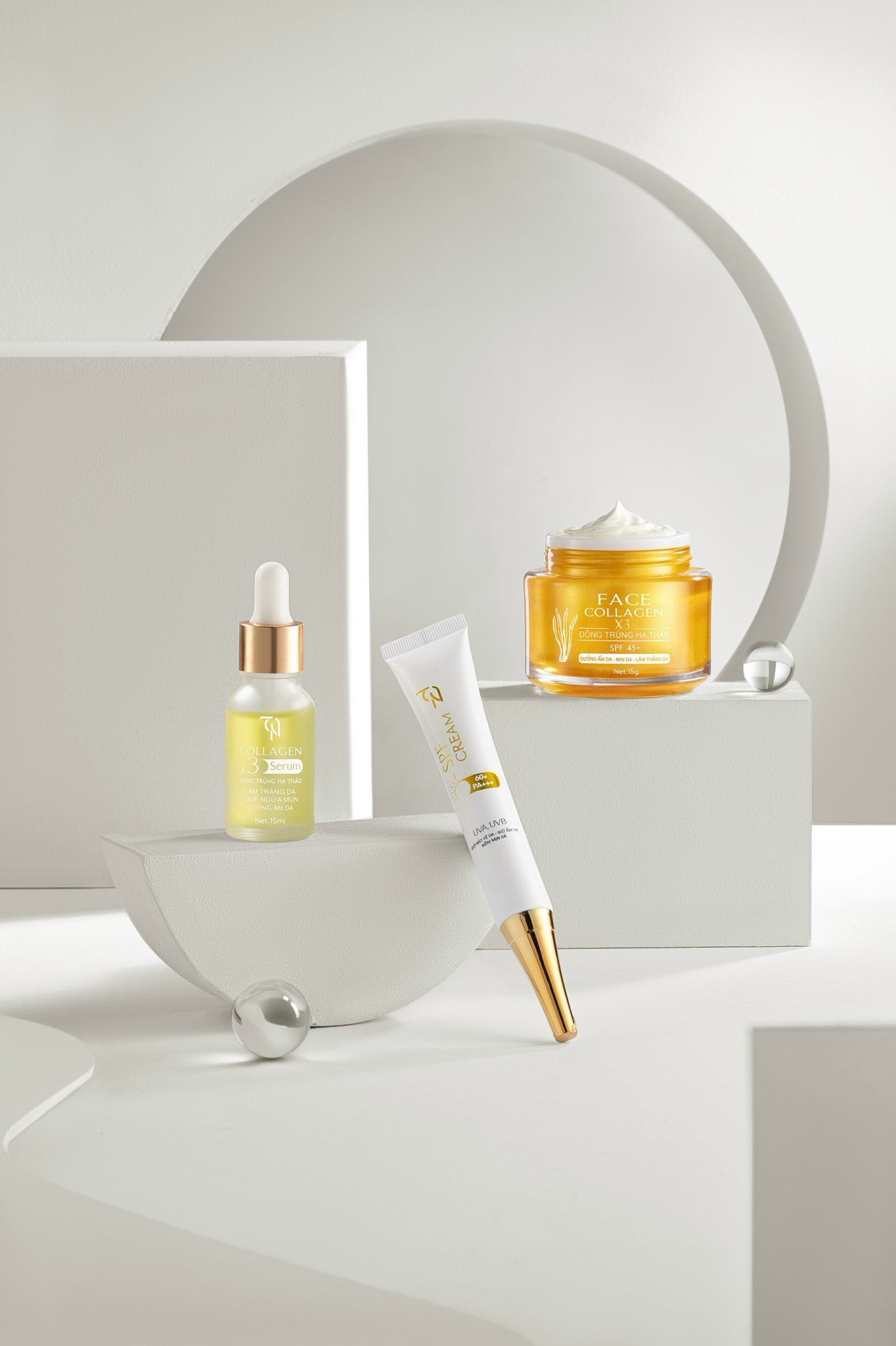 - Trọng lượng: Kem Face Collagen X3 (15g), Serum Collagen X3 (15ml), Chống Nắng Collagen X3 (20g).