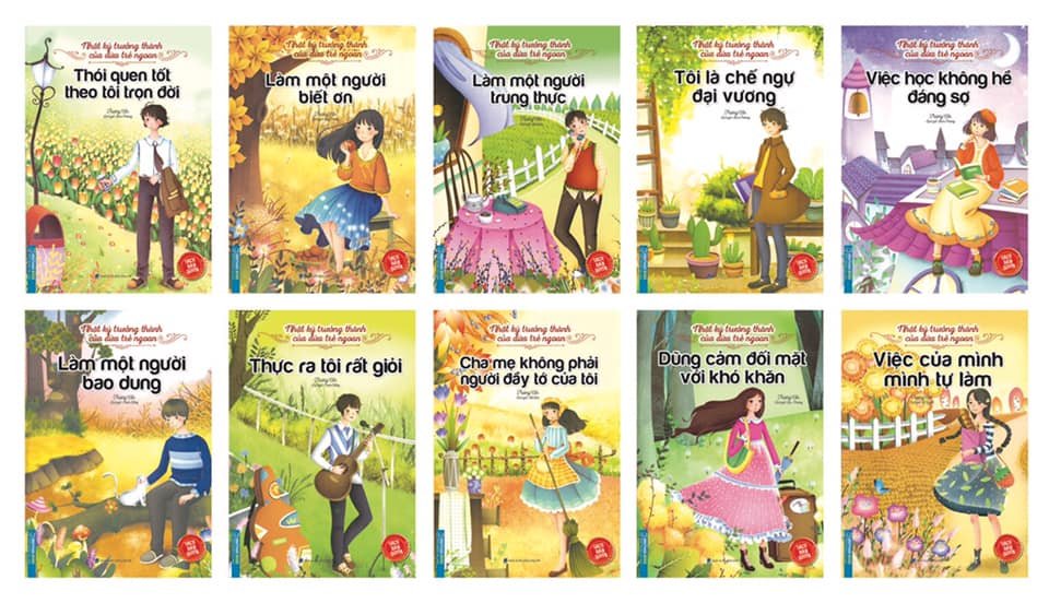 Quyển 1: Cha mẹ không phải người đầy tớ của tôi Quyển 2: Làm một người trung thực Quyển 3: Làm một người biết ơn Quyển 4: Làm một người bao dung Quyển 5: Tôi là chế ngự đại vương Quyển 6: Việc học không hề đáng sợ Quyển 7: Dũng cảm đối mặt với khó khăn Quyển 8: Thực ra tôi rất giỏi Quyển 9: Thói quen tốt theo tôi trọn đời Quyển 10: Việc của mình tự mình làm Đây là bộ sách hay, Hữu ích cho trẻ ???
