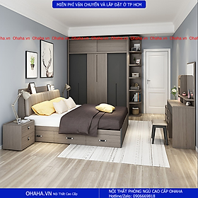 - Với chi phí phải chăng, bạn đã sở hữu bộ nội thất phòng ngủ hiện đại mà đáp ứng rất nhiều nhu cầu của mình được sản suất từ gỗ công nghiệp MDF cùng phụ kiện cao cấp. Hơn nữa, bạn sẽ hoàn toàn yên tâm sử dụng với chính sách bảo hành 2 năm chính hãng từ công ty. Lưu ý: Combo Phòng Ngủ Cao Cấp Xám Khói Ohaha được giao lắp miễn phí tại TP HCM, các tỉnh thành khác xin liên hệ qua shop để biết chi phí vận chuyển và lắp đặt. Combo Phòng Ngủ Cao Cấp Xám Khói Ohaha chưa bao gồm các vật dụng trang trí và bộ chăn-ga-gối-nệm.