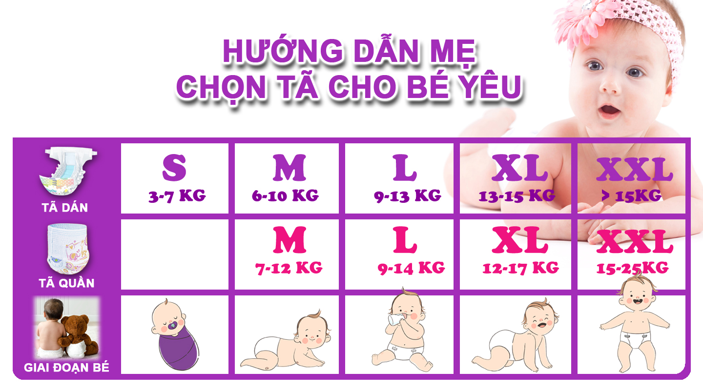 -Size S: cho bé sơ sinh từ 3-7 ký