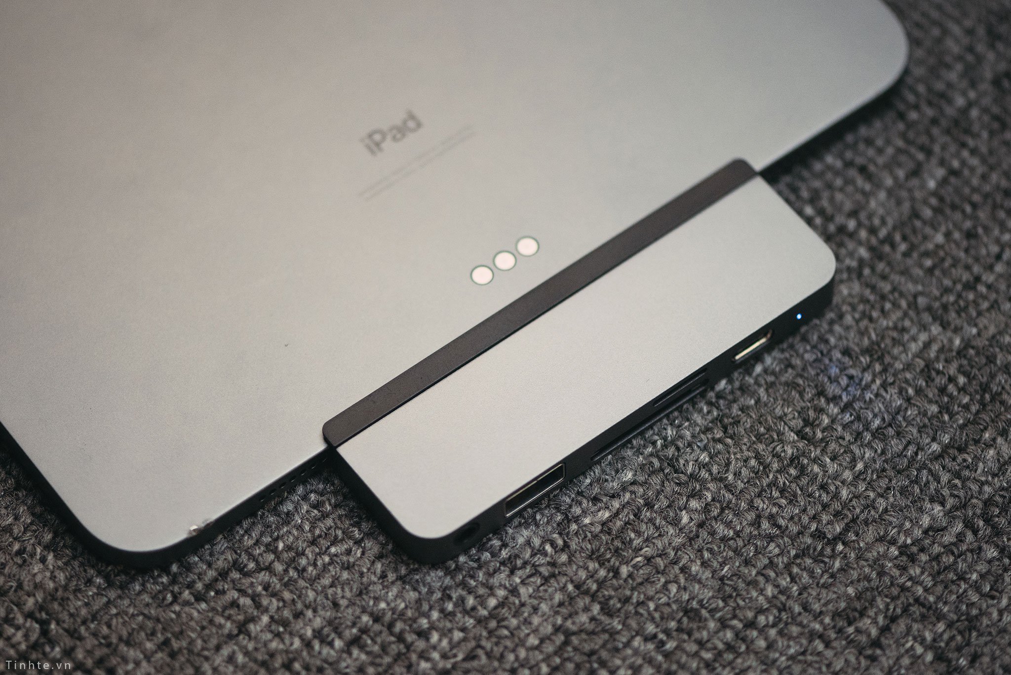 Tay cầm hình chữ C: Tay cầm này giúp giữ chặt chiếc hub với thiết bị, với chất liệu polycarbonate mềm và nhựa ABS để đảm bảo không gây trầy xước cho iPad Pro và cổng USB-C.