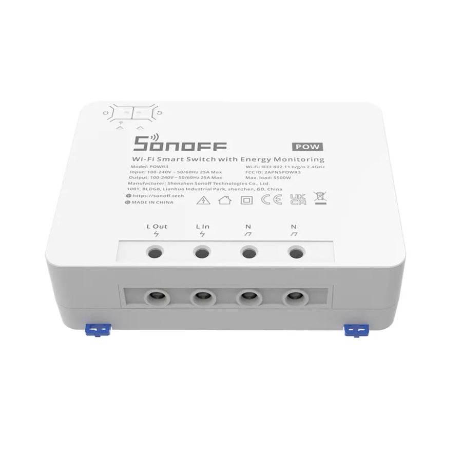 - Công suất đầu ra cao nhất 25A / 5500W Công Tắc Thông Minh Pow R3 có công suất đầu ra cao nhất giúp các thiết bị công suất cao của bạn trở thành thiết bị thông minh hoặc như một đồng hồ đo phòng duy nhất để đo mức tiêu thụ điện năng.